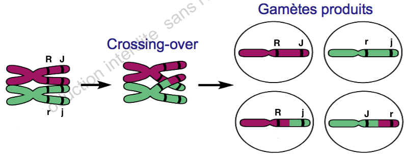 Crossing-over (échanges de matériel génétique entre chromosomes homologues) et