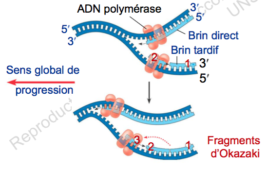 sens global de progression), et le deuxième brin parent sera quant à lui, synthétisé