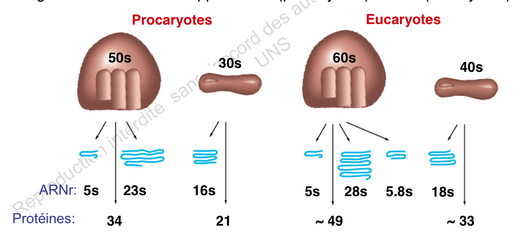 Donc voilà, pour cette partie, il faut pas trop se prendre la tête. Le plus important c'est de connaitre les constantes de sédimentation des sous-unités du ribosome pour chaque type de cellules.