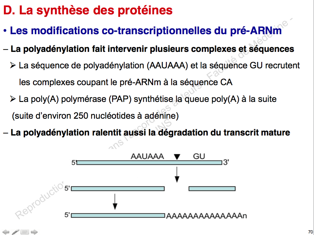 Je voulais savoir si le prof cette annee avait détaillé ce qu'était la coiffe c'est à dire qu'on ajoute une Guanine... Et si il avait aussi détaillé la modification de la queue, cad l'ajout de 50 à 250 nucleotides...?
