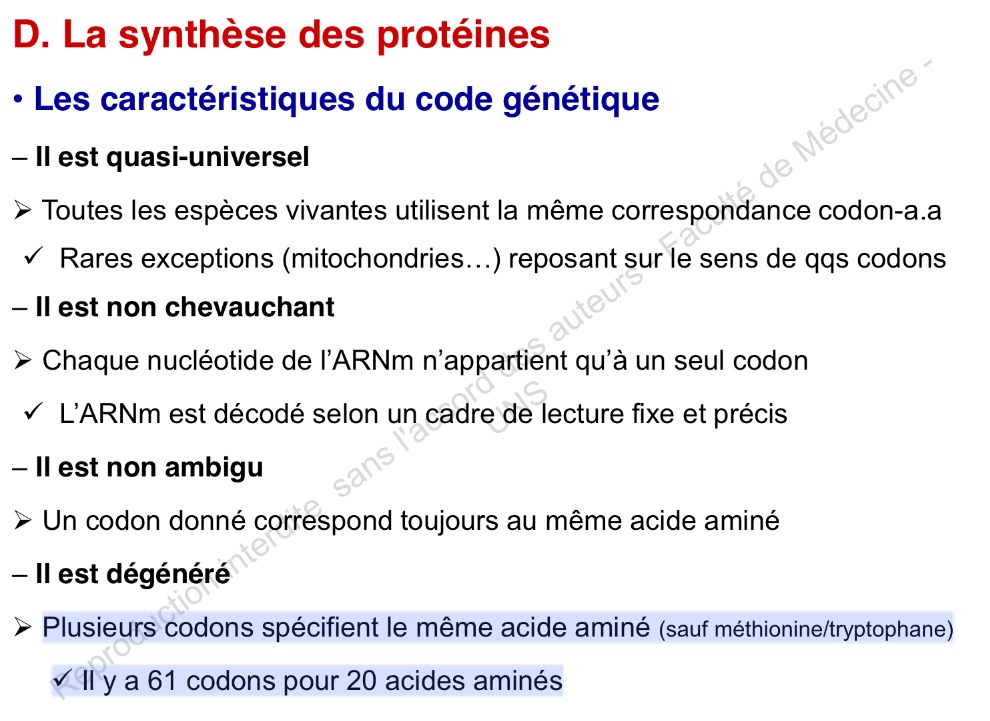 Le code génétique est dégénéré : plusieurs codons peuvent coder pour le même acide aminé", on l'aurait compter