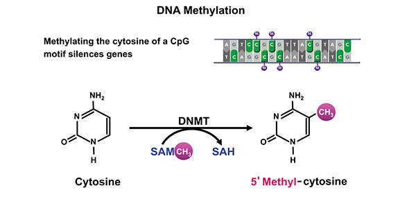 Dans le cours c'est écrit que l'ADN peut être méthylé et par conséquent se retrouver sous forme compactée, ce qui permettra d'inhiber sa transcription.