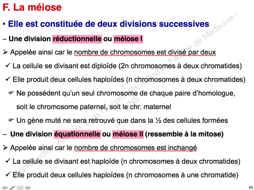 :arrow: Méiose II = Division équationnelle = Nombre de K inchangé