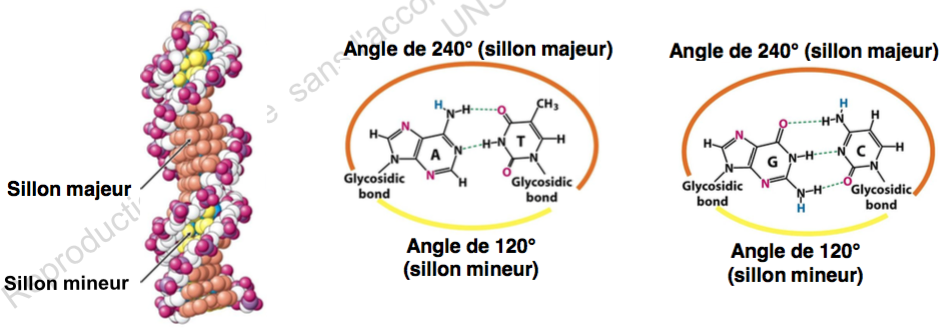 Au niveau d'un appariement A/T ou C/G, les 2 liaisons glycosidiques vont toujours être orientées du même côté (
