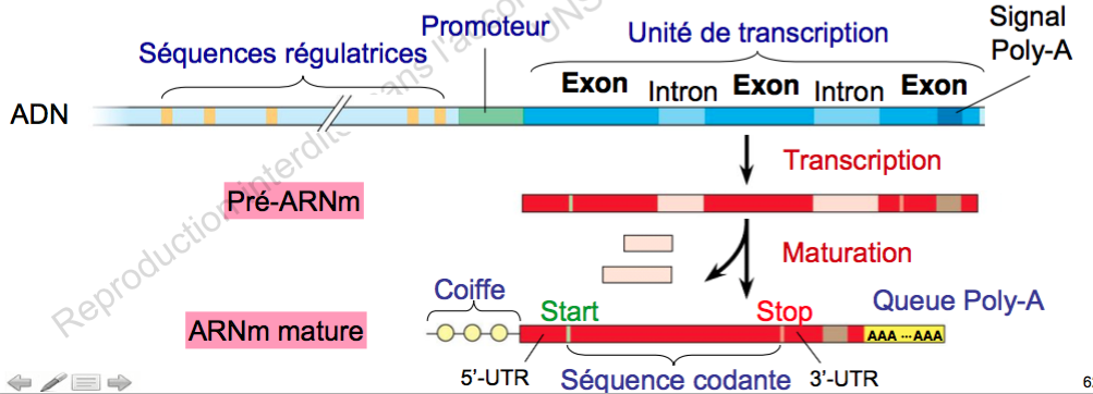 De plus, l'ARNm mature a subi des modifications, il n'est plus strictement identique au pré-ARNm. Il est donc plus vraiment complémentaire au brin d'ADN de départ.