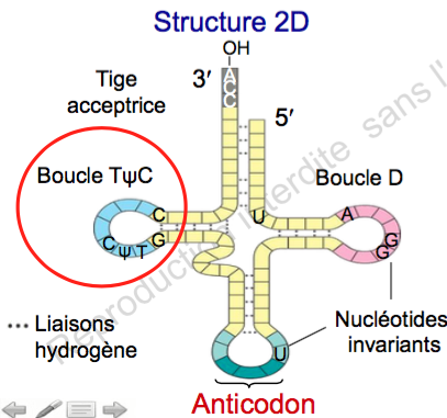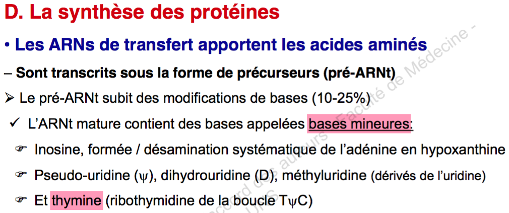 Cependant, dans les ARN de transfert, on pourra aussi retrouver de la thymine en tant que base mineure :