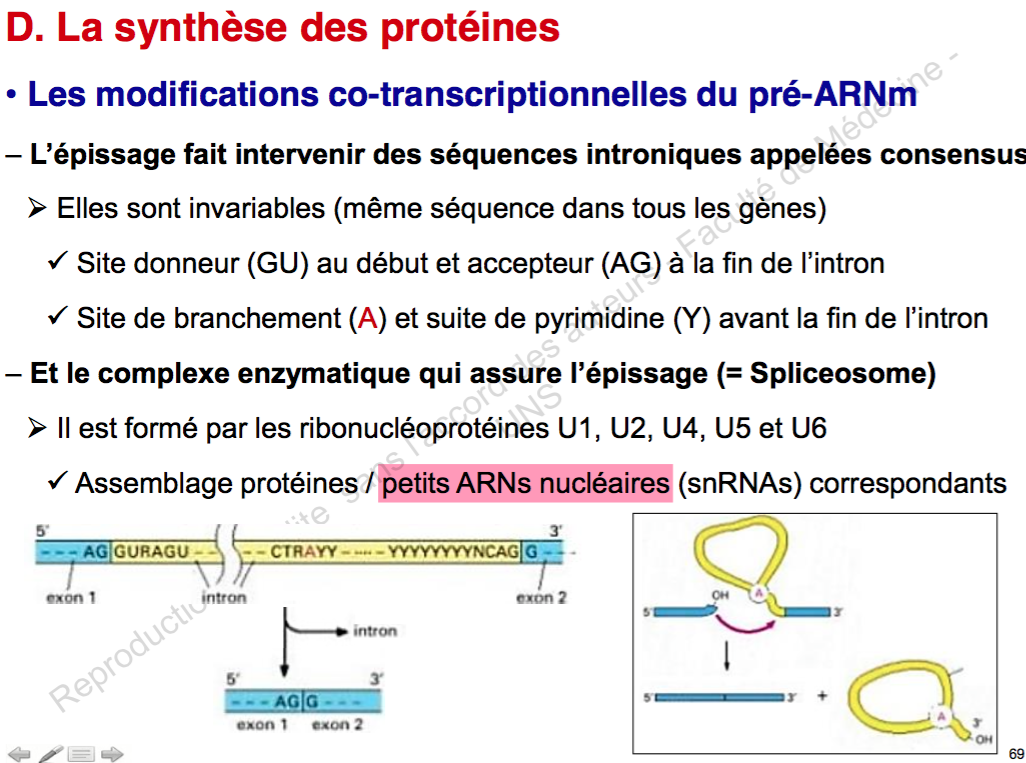 Quelqu'un pourrait-il m'indiquer sur quelle diapo il est indiqué qu'il y a intervention de petit ARNs nucléaires dans l'épissage ?