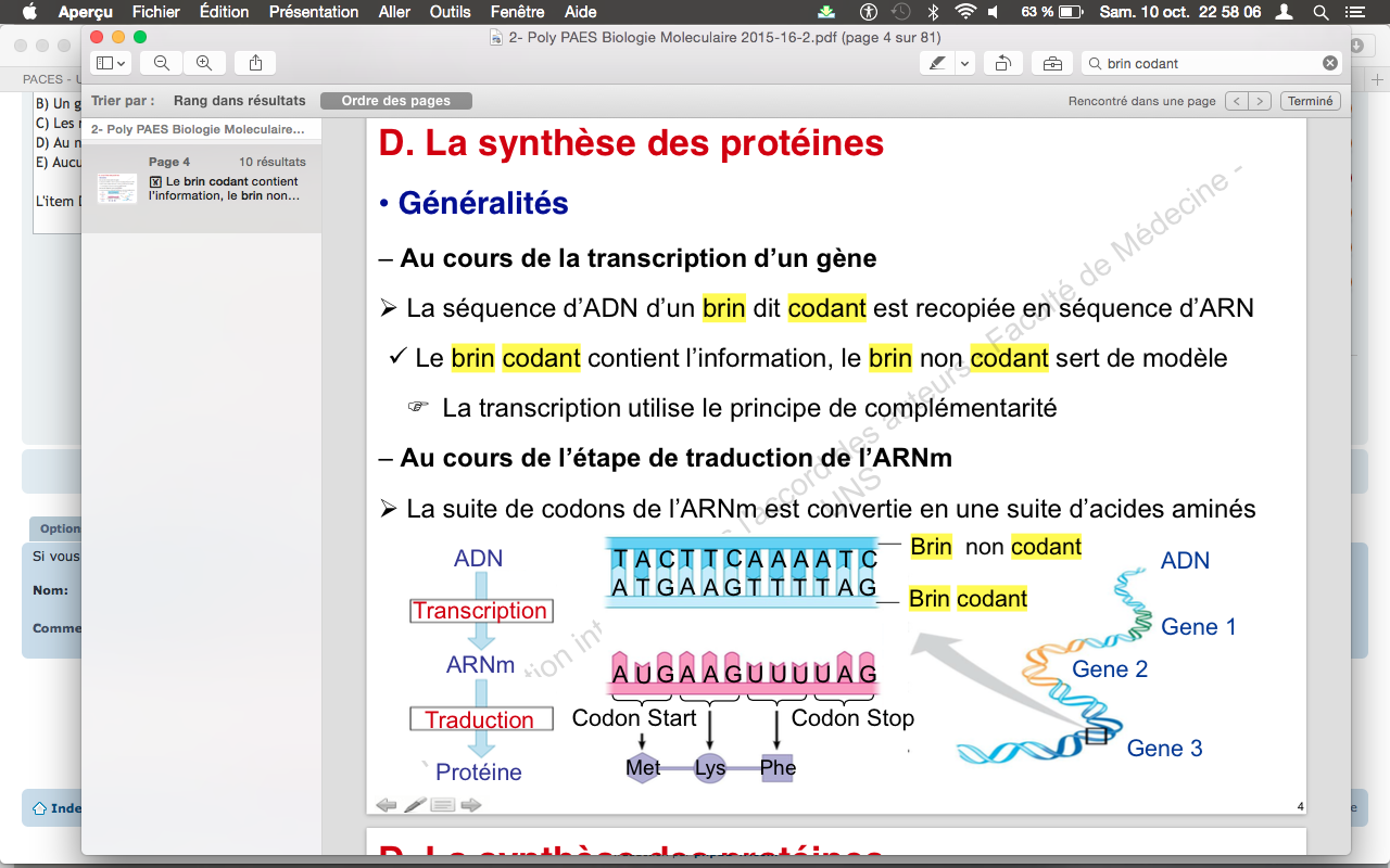 Donc tu vois déjà que dans le Cours c'est vraiment simplifié quand il parle des brins codant et non codant d'un gène. C'est pas aussi bien départagé dans la réalité. :P