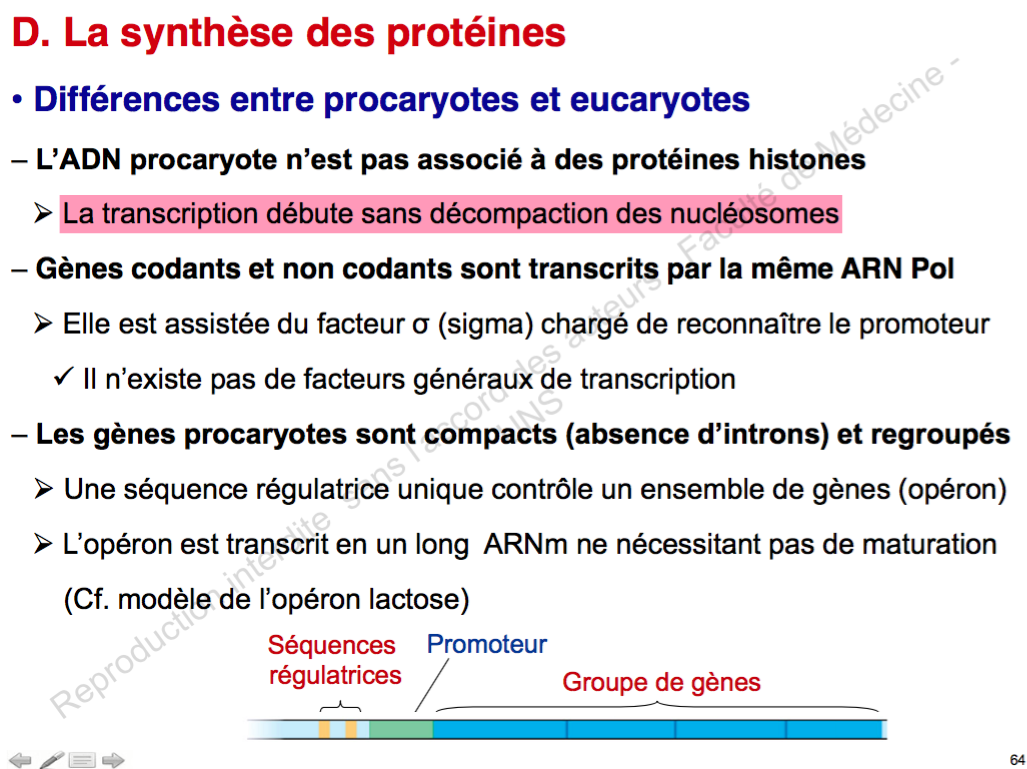 "l'ADN procaryote n'est pas associé à des protéines histone : sa transcription débute sans décompation des nucléosomes"