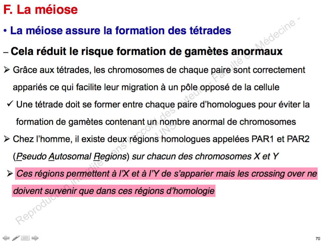 J'ai un petit problème par rapport à l'item B "crossing over entre les K sexuels" vu que dans le cours de BDR il est écrit noir sur blanc qu'il n'y a pas de recombinaison entre les chromosomes sexuels...