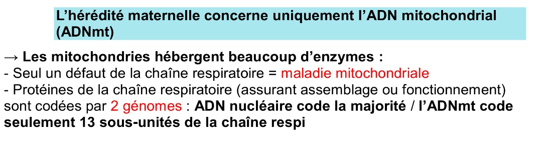 Je ne comprends pas pourquoi l'item B est compté vrai, il me semble que l'hérédité mitochondriale est transmise par la mère et donc les maladies
