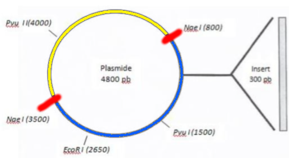 plasmide avec insert, tu vois sur le schéma que l'insert de 300 pb a été inséré au niveau du
