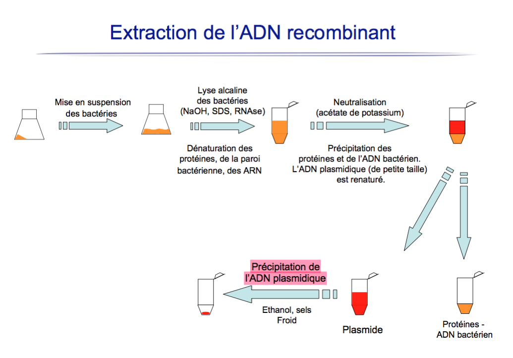Du coup, au final, ne serait-il pas faux de parler de précipitation de l'ADN plasmidique, étant donné qu'on le récupère au niveau du surnageant et qu'on l'étudie par séquençage ?