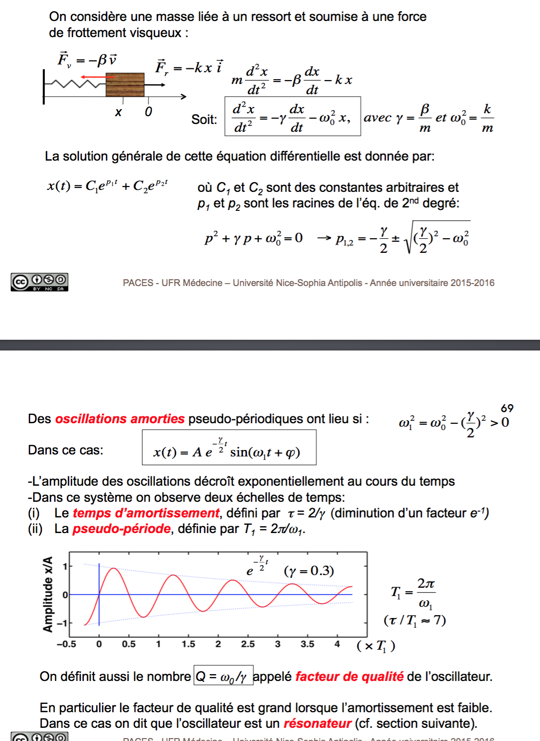 j'ai pas compris cette phrase, et dans la formule du facteur de qualité ( Q = w0/gamma ) c'est quoi ce gamma ? c'est toujours beta/m ?