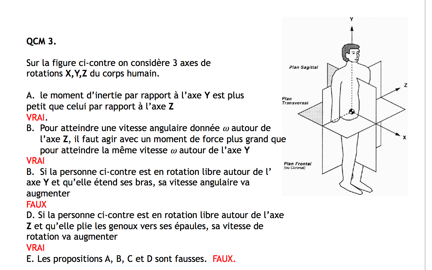 concernant ce QCM je comprends pas pour l'item 1 est vrai pck pour moi faire tourner le mannequin horizontalement (axe Z) est plus facile que de le faire tourner verticalament (axe Y)