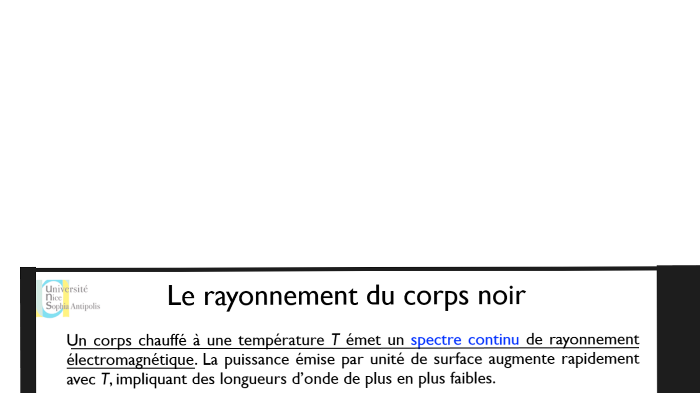 Or étant allée en cours j'avais notifié qu'un corps noir possédait un spectre électromagnétique qui ne dépend que de sa température et qui était continu.