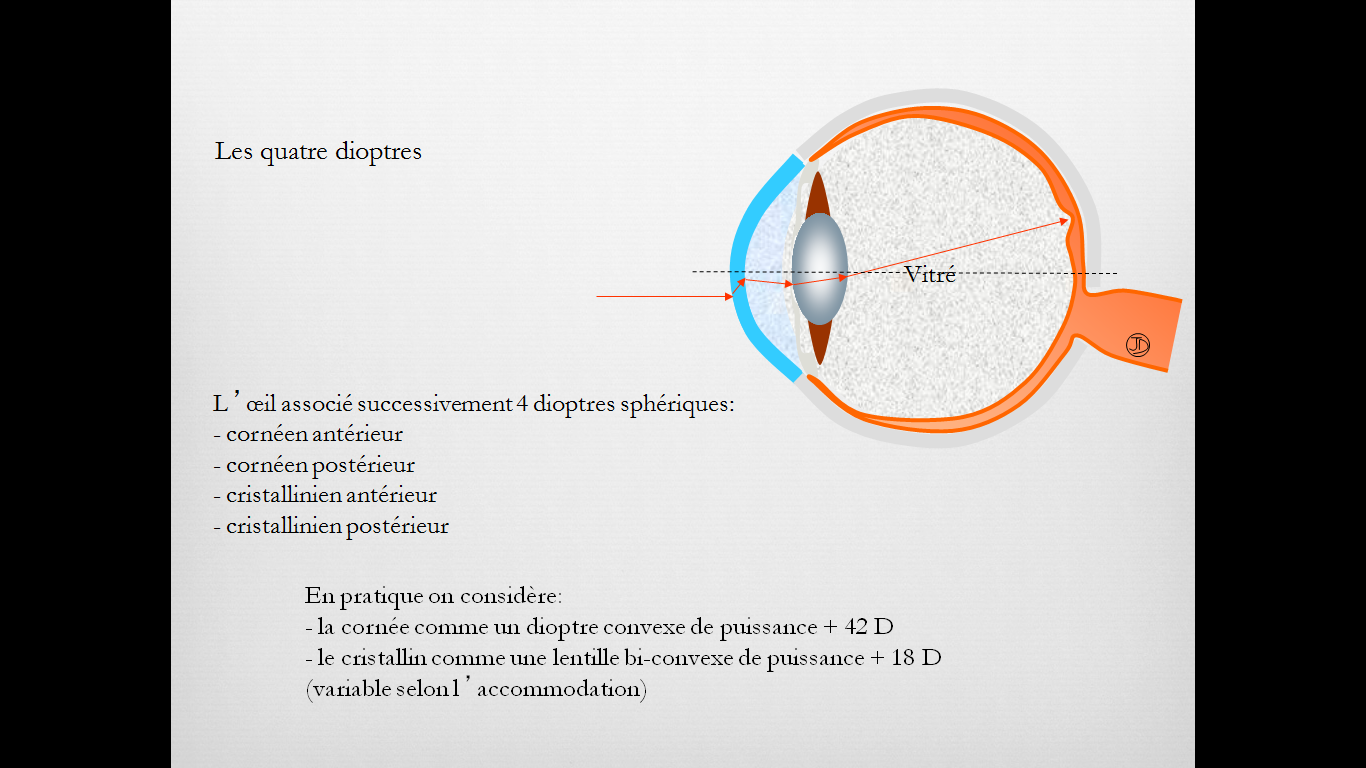 On considère que la cornée est constituée 2 dioptres :