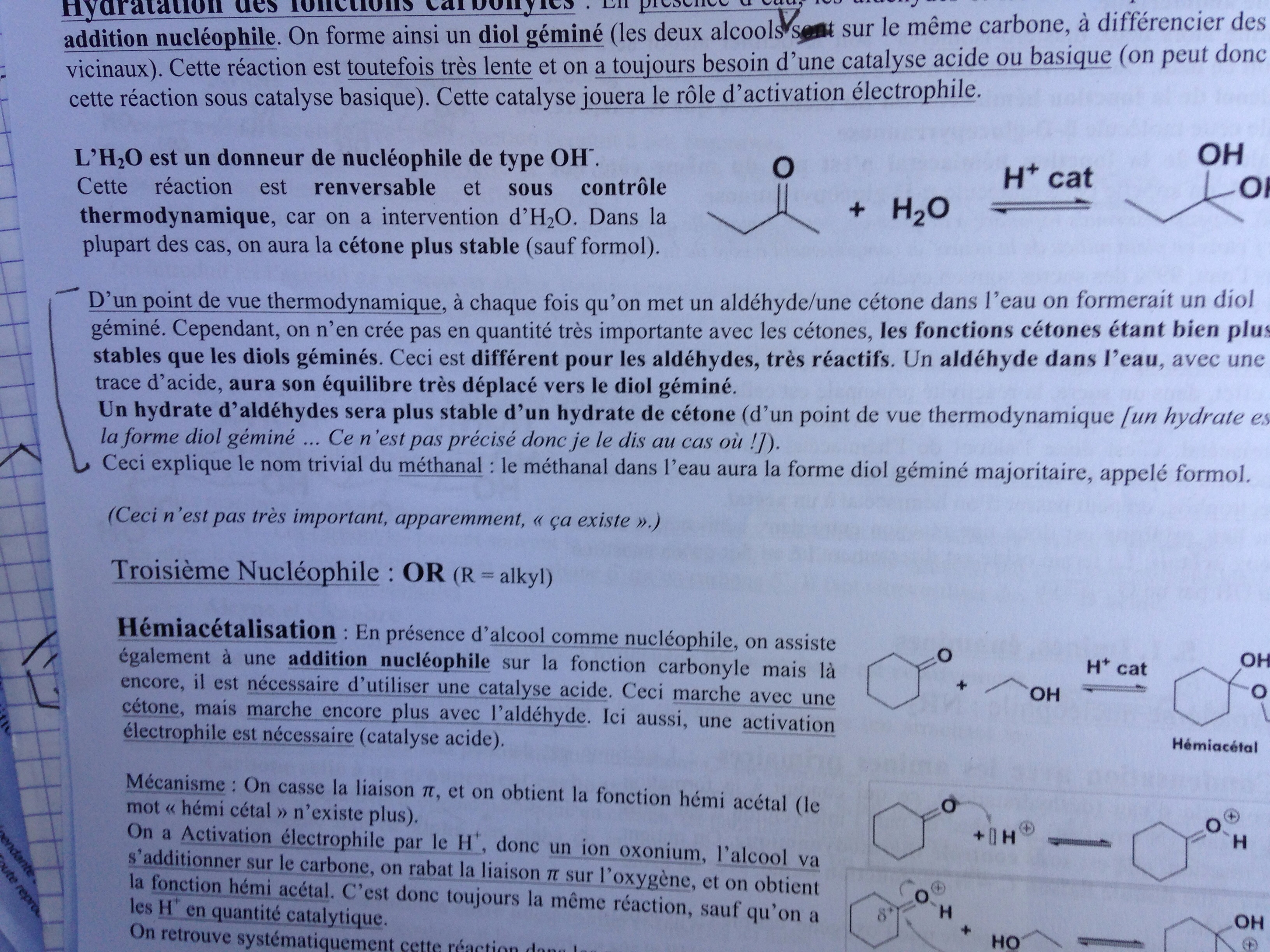 Petite question, dans le cours concernant la réactivité de C=O, partie gem et diol, Hydratation des fonction carbonyles: