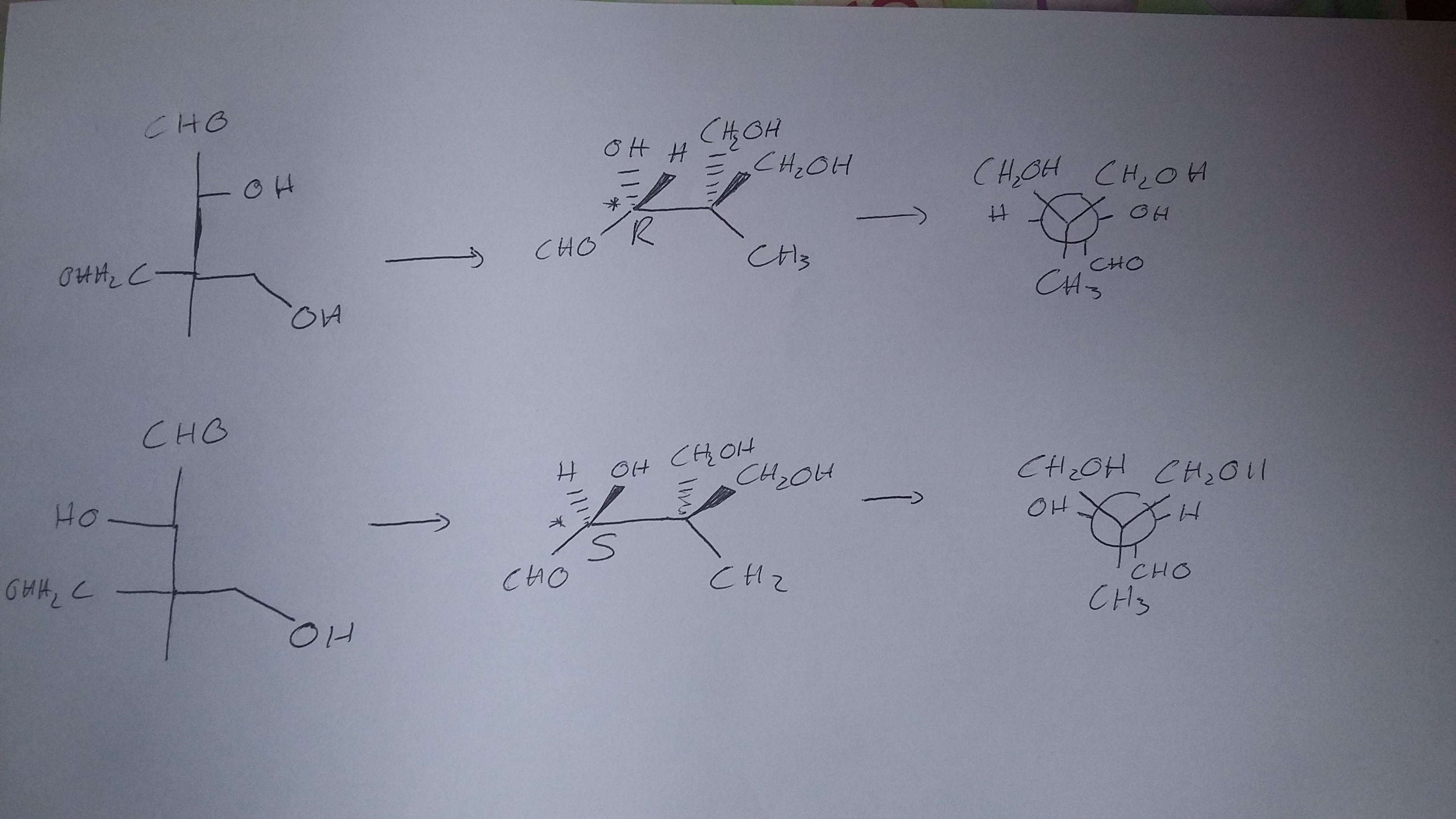 Je sais que dans la représentation de Fischer les liaisons représentées horizontalement sont en avant du plan. Est-ce que ça veut dire que ce Carbone asymétrique a :