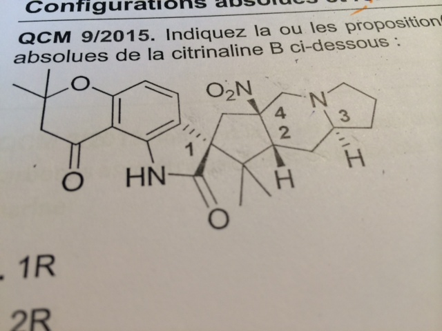 Le cours dit que lorsqu'on veut déterminer la configuration absolue d'un carbone asymétrique et que la liaison entre le carbone asymétrique et le substituant d est dans le plan, on effectue une rotation de manière à l’orientée en arrière.