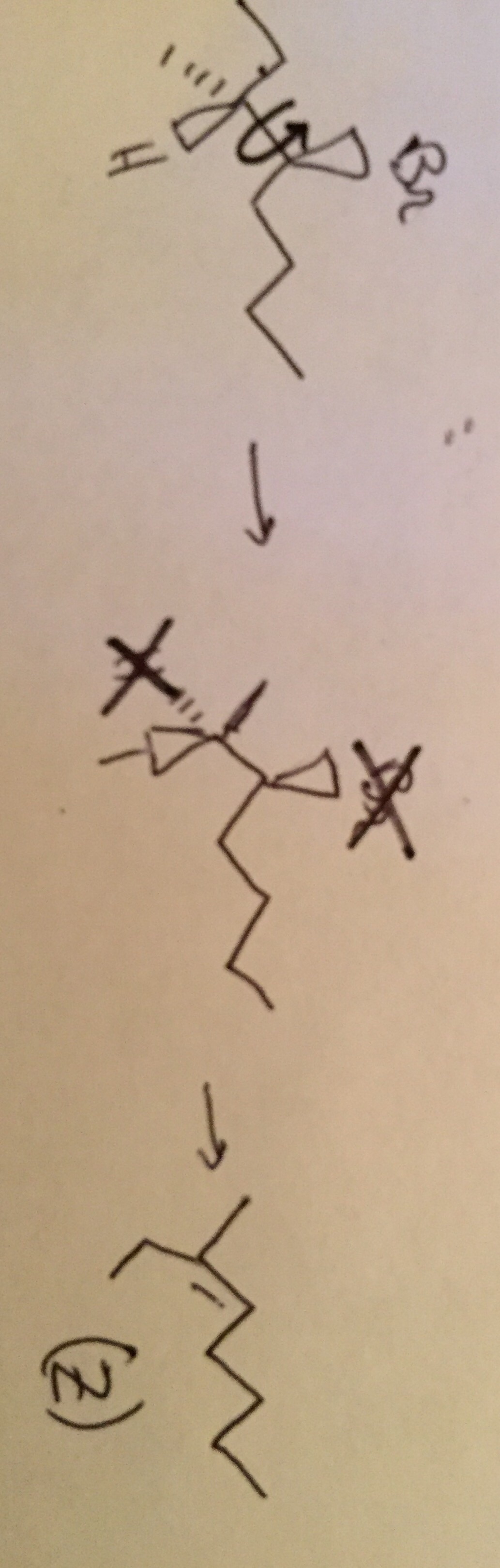 Le Br partant et l'hydrogène expulsé sont dans le même plan et en anti, alors pourquoi la fin de la chaîne (l'éthyl) a-t-il rotationné ? (J'invente les termes que je veux :curse:)