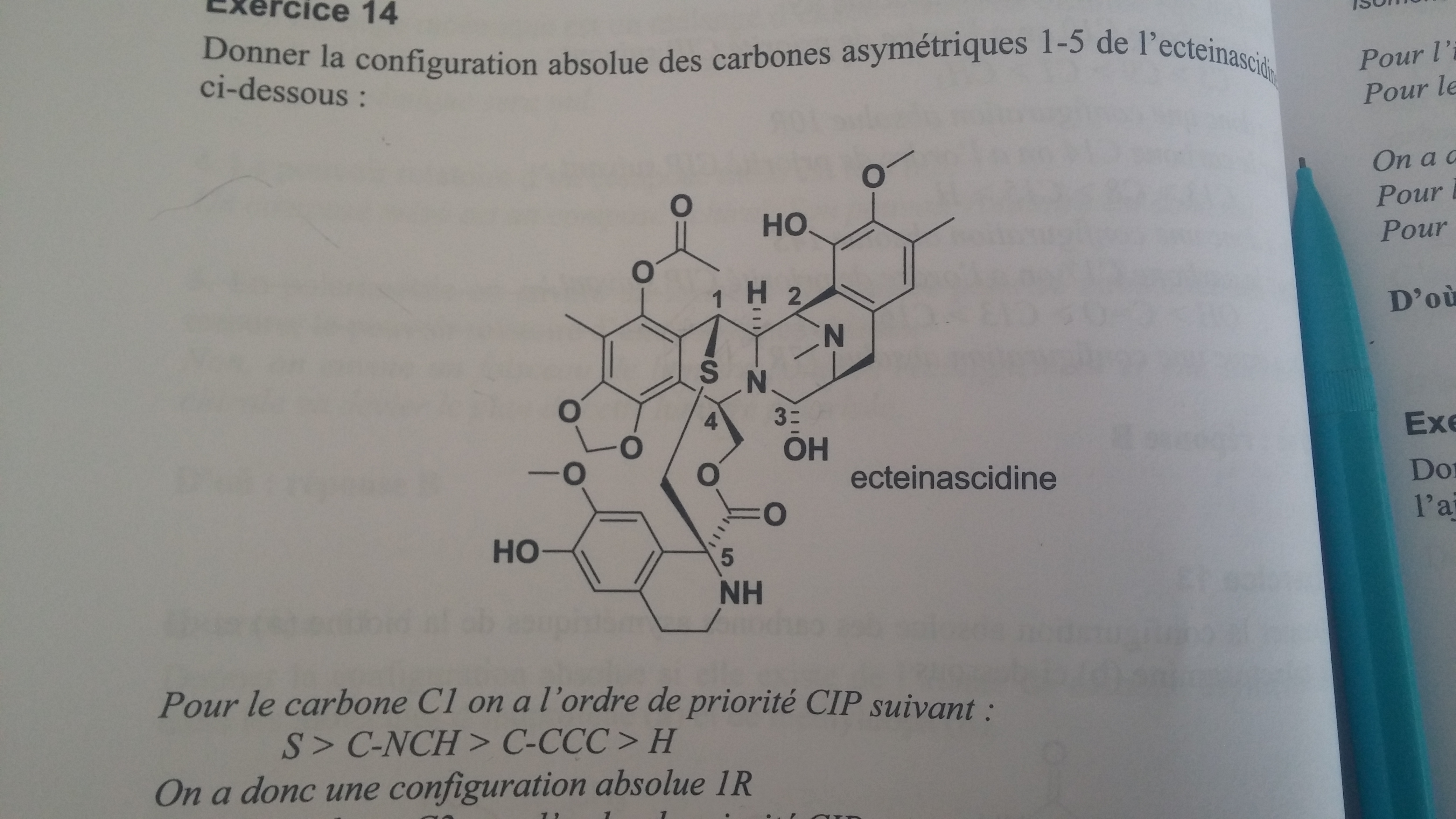 Je voulais savoir votre avis sur la configuration du carbone asymétrique 1, il est écrit qu'il est R mais je ne comprends pas pourquoi car pour moi il est S, et avec la justification du prof c'est S et non R est-ce un erratum ou bien c'est moi qui n'est rien compris :P