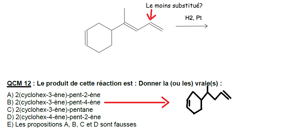 J'aurais une question par rapport au QCM 12 :) Lorsque j'ai fais ce QCM, j'ai trouvé également la réponse B soit le "2(cyclohex-3-ène)-pent-4-ène" :)
