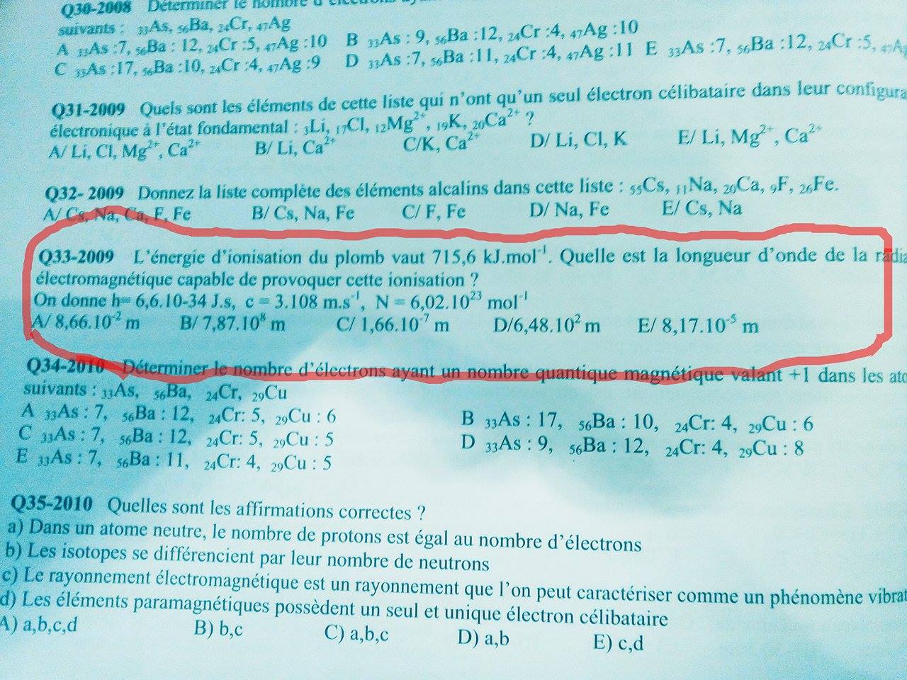 23 pour avoir ton énergie pour ioniser UN atome de plomb: