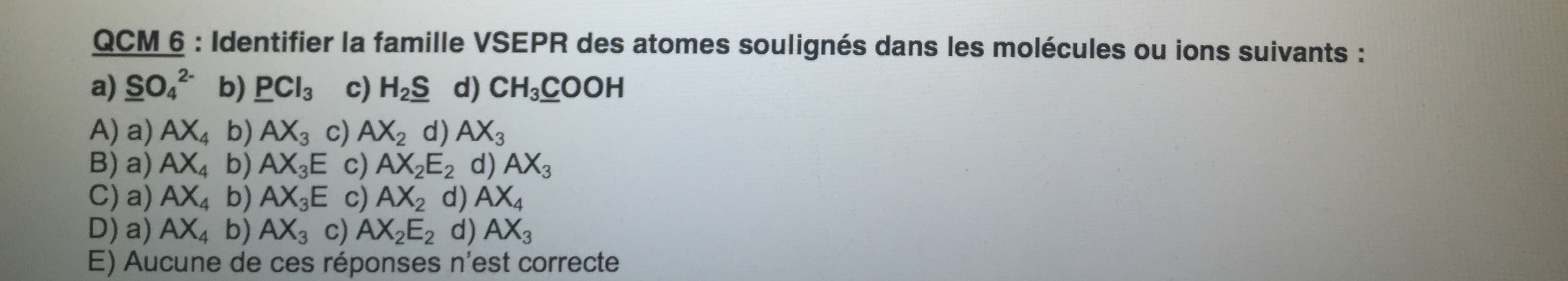 Quand l'atome de soufre passe en valence secondaire = 4, il y a 4 électrons célibataires et un doublet non liant. Je ne comprends pas pourquoi pour SO4 2- c'est AX4 et pas AX4E.
