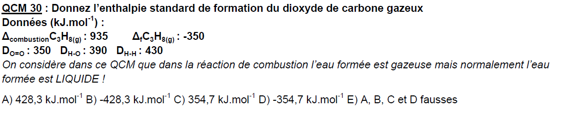 J'ai un souci avec le qcm de thermo. Je trouve 3x=935-350-1750-1720+3120, alors que d'apres la correction, la réponse est : 3x=935-350-700-1720+3120... Est ce que quelqu'un pourrait m'expliquer d'ou vient ce 700