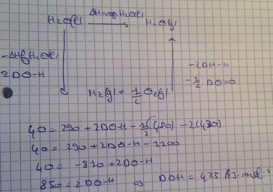 En fait même avec l'errata je ne trouve pas le même résultat que vous c'est à dire 460 kJ.mol-1, je trouve 425 kJ.mol-1, voici mon calcul (désolé pour mon écriture) :