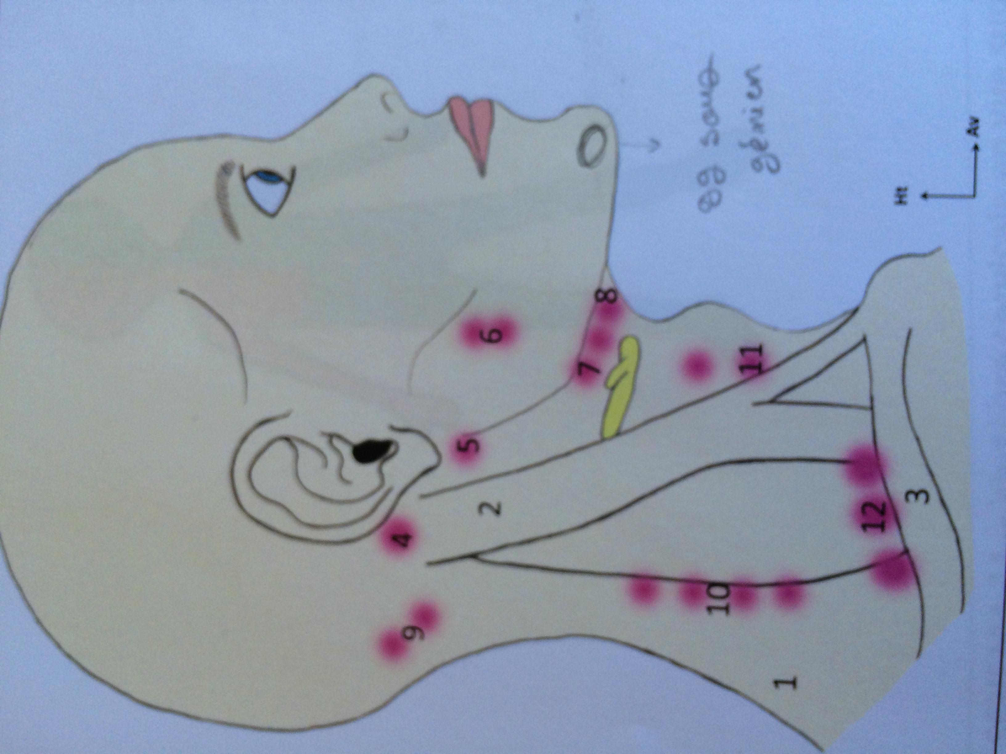 La légende 8 correspond au ganglion sous mental=sous génien