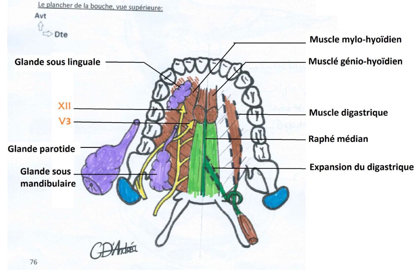 Je comprends pas trop la phrase -> " le ventre antérieur du digastrique s'insère dans la région génienne et donne une expansion vers le raphe médian du muscle mylo -hyoïdien" je comprends pas pourquoi on nous parle du mylo hyoïdien la ? :/