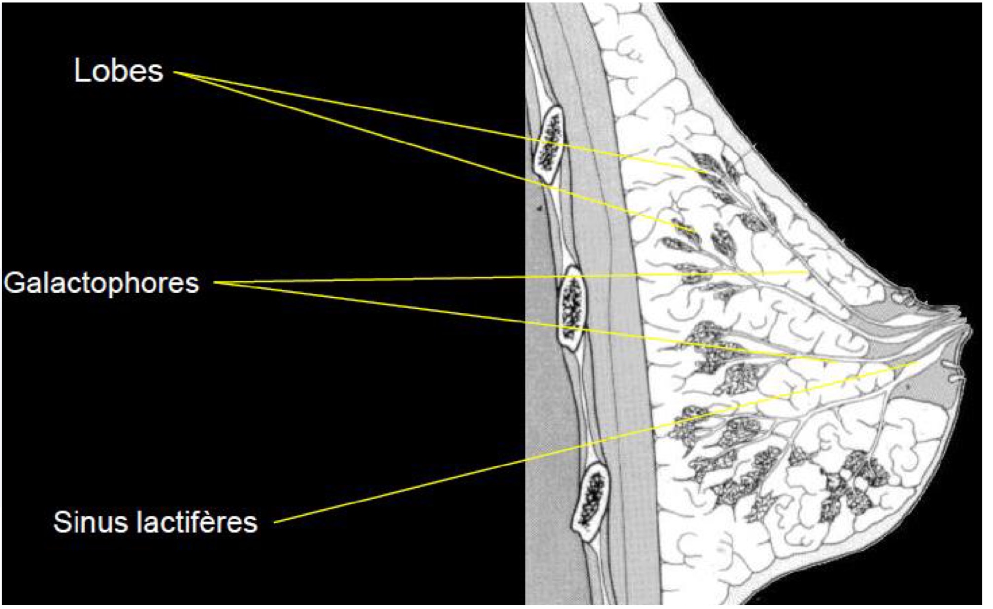 Pouvez vous faire la distinction entre canal galactophore/Conduit lactifere/ et sinus lactifere?