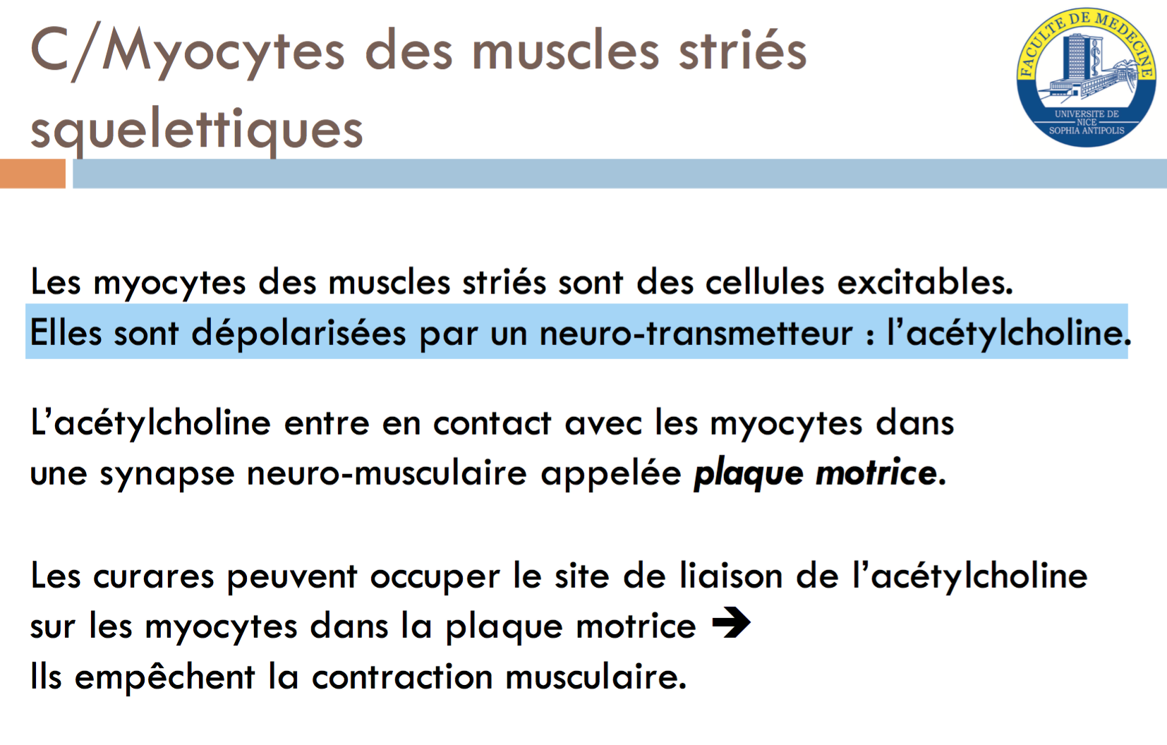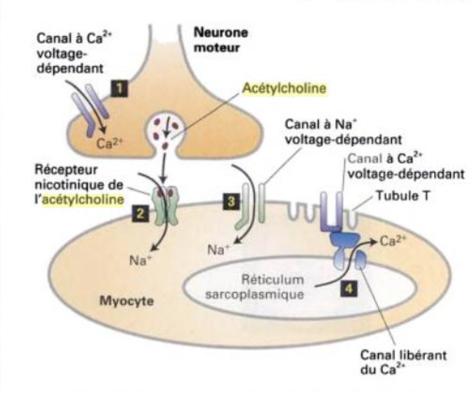 A) Les myocytes des muscles striés sont des cellules excitables. Elles sont dépolarisées par un neurotransmetteur :