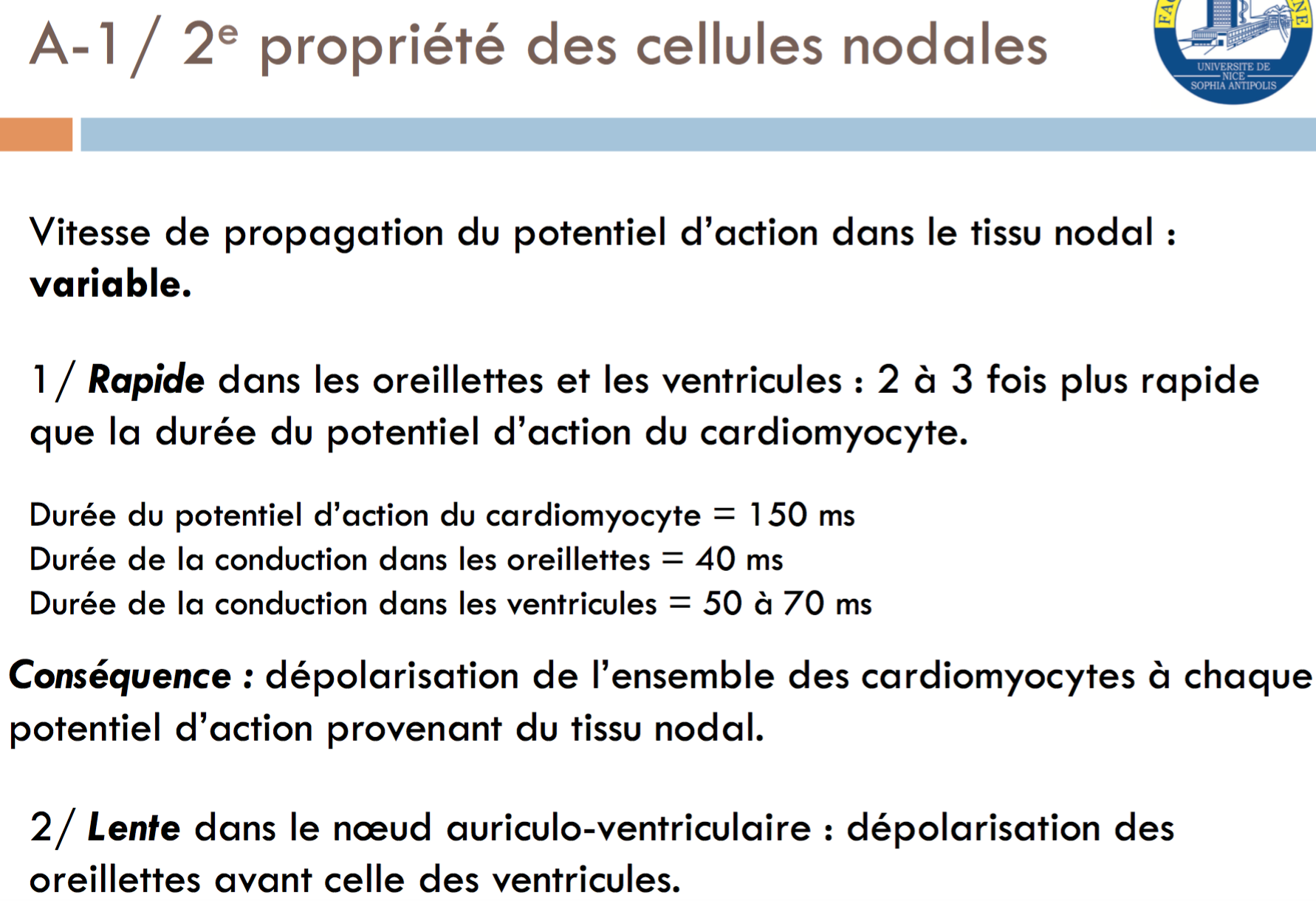 En fait ici le prof parle du potentiel d'action des cellules nodales. Il précise que ce dernier est 2 à 3 fois plus rapide que le PA des cardiomyocytes.