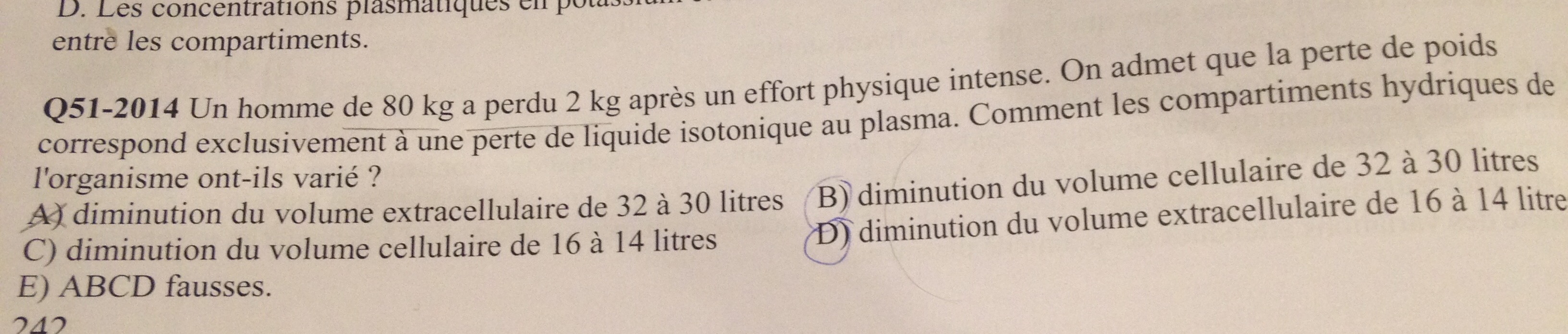 Ce QCM est fréquent, le volume des cellules ne change pas seul le volume extra cellulaire varie quand on exfiltre quelque chose :)