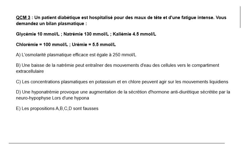 Du coup pour ton item si on considère qu'on se trouve dans un organismes avec +++ membranes sélectives, le potassium et chlore n'entrainent pas de mouvements liquidiens car avec ce type de membrane seules les osmoles efficaces entrainent des mouvements liquidiens