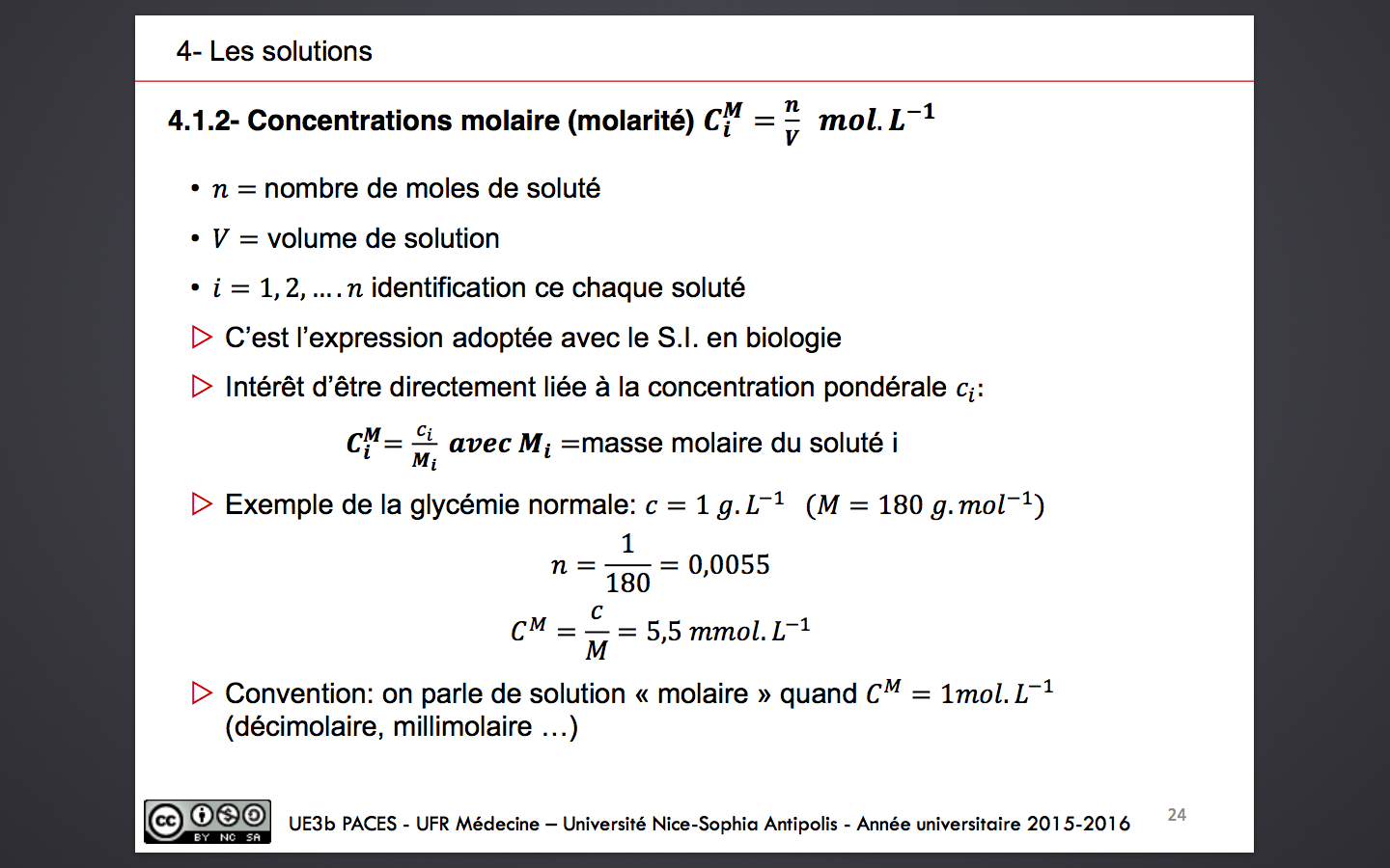 la première c'est la relation entre concentration molaire et pondérale: au début on nous dit que C(molaire)=ci/Mi mais ensuite je comprends pas pourquoi il fait n= c/M= 1/180