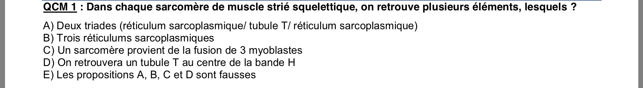 -item C: je ne comprends pas l'histoire que le sarcomere provient de la formation de 3 myoblastes..