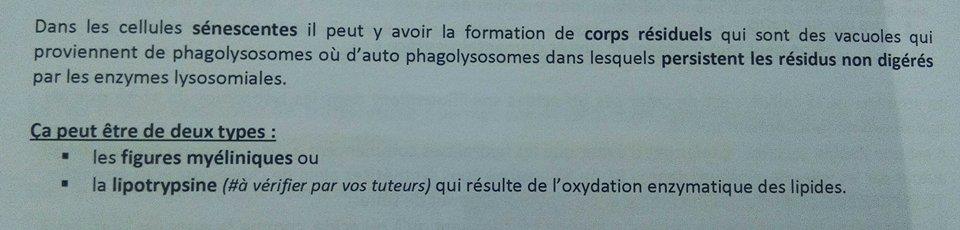 « Ce sont des vacuoles provenant de phagolysosomes ou d'autophagolysosomes dans lesquels persistent des