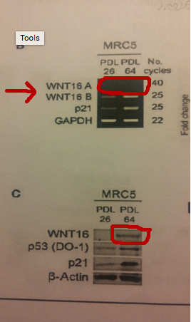 En fait il est dit dans le texte que pour les 2 isoformes WNT16A et WNT16B il est impossible de visualiser séparément les 2 protéines par Western Blot du fait de leur masse moléculaires trop proches, mais qu'avec la PCR on peut séparer les ARNm. C'est pour ça que sur la fig 1B on les voit séparément, mais pas sur la fig 1C.