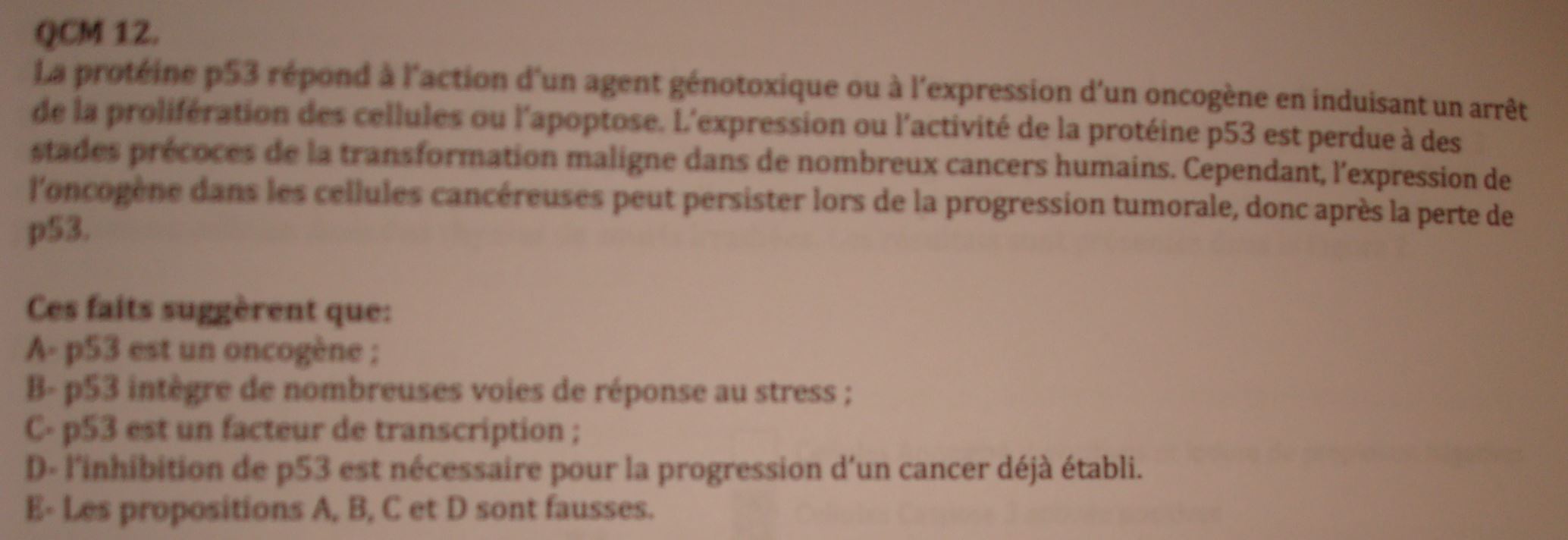 Je viens de faire des annales, et Gigi adorait (par exemple en 2011) faire des qcm en parlant de P53.