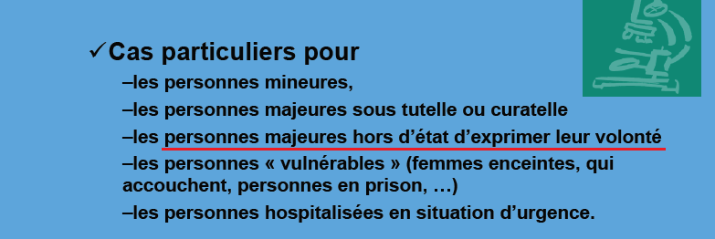 :arrow: Page 7 : Personnes majeures sous tutelle ou curatelle (C'est à dire en état d'exprimer ses volontés.)