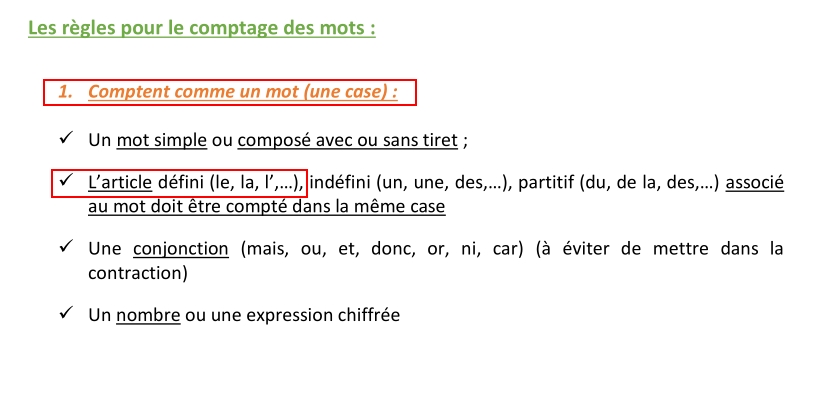 C'est marqué que "l'article défini associé au nom" compte pour une case