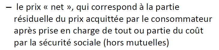 "Prix net --> ce que le consommateur va réellement payer (ou sa mutuelle)".