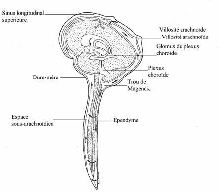 Une fois le liquide dans cette citerne, soit il vient baigner dans les méninges cérébrales soit dans le rachis