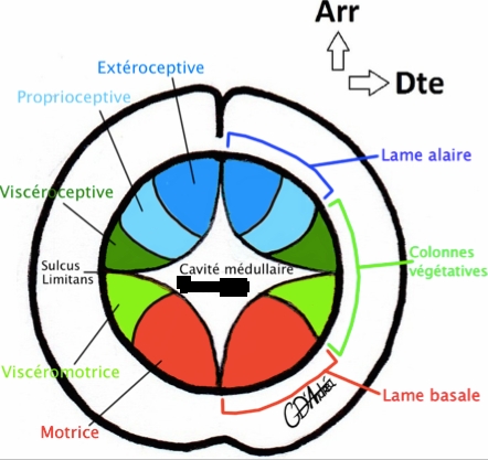 je comprends que ce soit une coupe transversale, mais si la lame alaire est dans la partie dorsale, normalement ça devrait pas plutôt être GAUCHE à la place de Droite ?