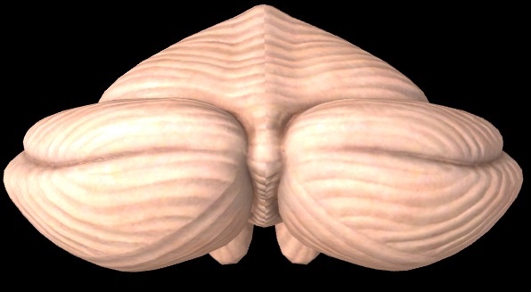 Vu que le cervelet a une forme de pigne de pin en vue latérale, si tu poursuit cette fissure il est normal que tu puisse aussi la voir en vue postérieure :)