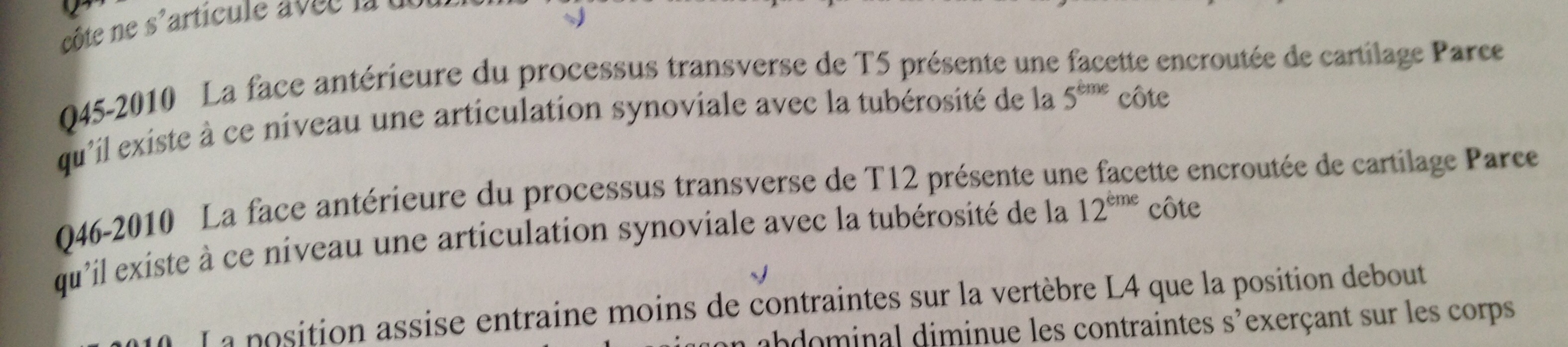 Pour ce qui est de l'articulation des côtes, elles sont normalement à cheval entre 2 vertèbres au niveau du CV + au niveau des processus transverse